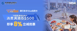 中国香港精选商户消费满港币$500即享8%立减优惠